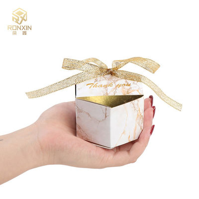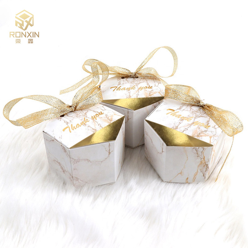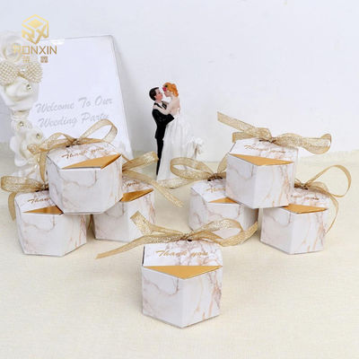 White Hexagonal Foldable Gift Boxes With Ribbon For Sweet Candy Gift Packaging