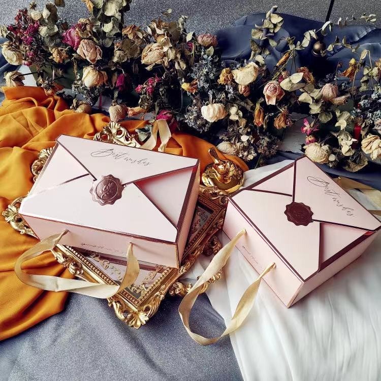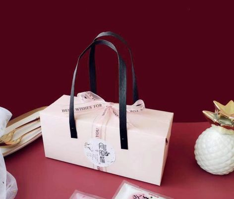 Pink Colorful Foldable Gift Boxes With Ribbon By Logo Hot Stamping For Handle Gift Packaging