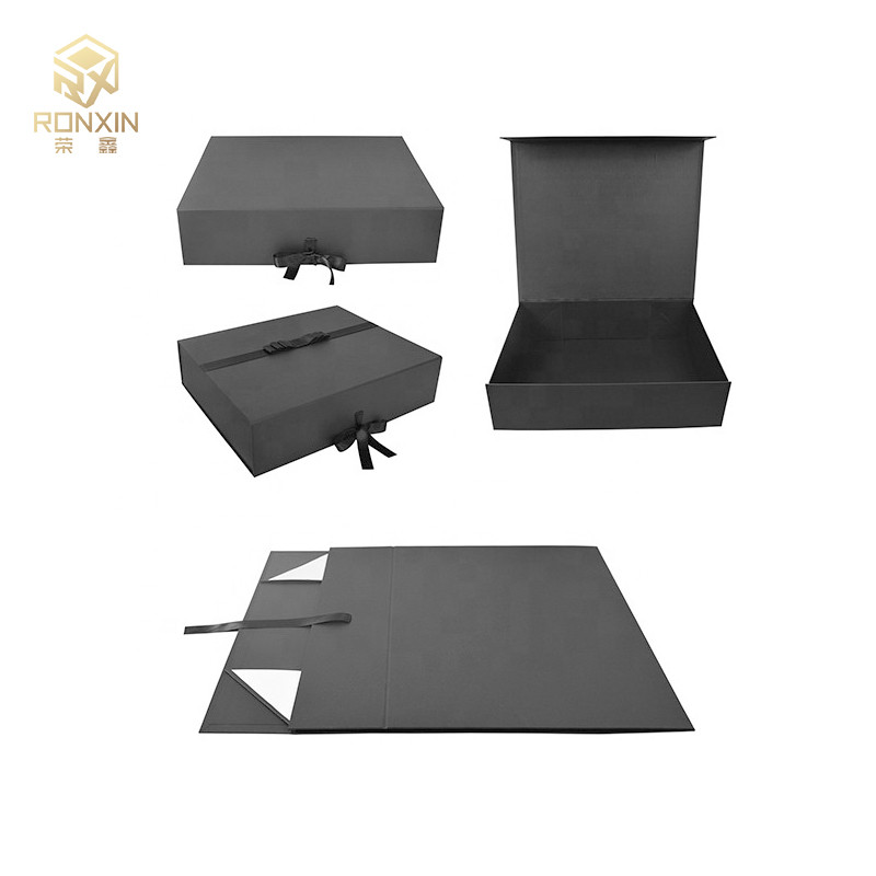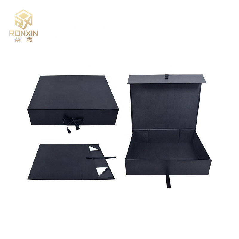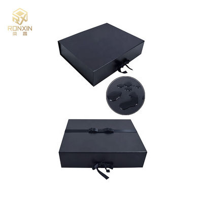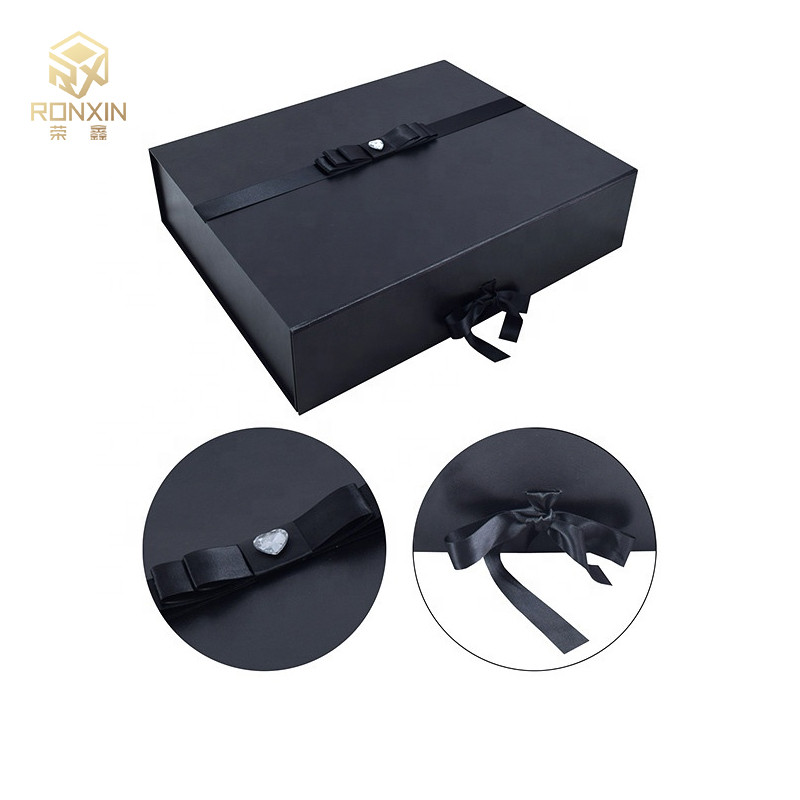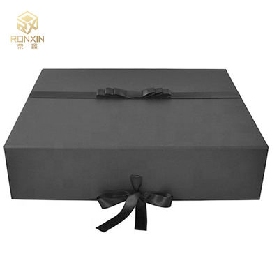 Black Paperboard Foldable Gift Boxes With Ribbon For Gift Packaging