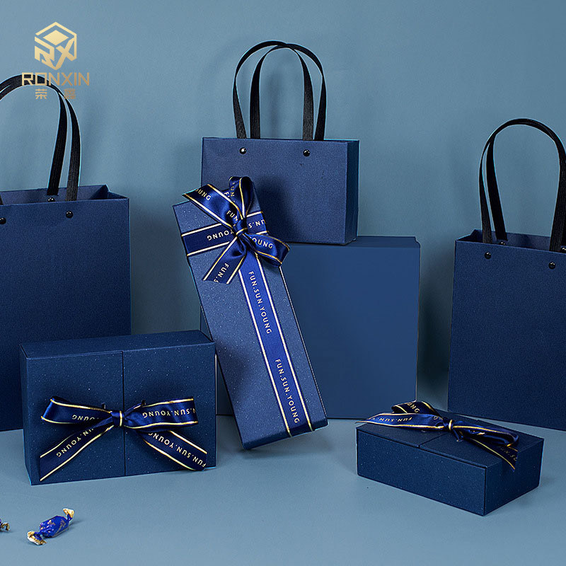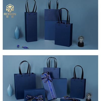 Blue 2mm Paperboard Gift Boxes With Ribbon And Handle For Gift Packaging