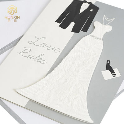 White Art Paper Laser Cut Wedding Cards With Logo Hot Stamping For Wedding Cards