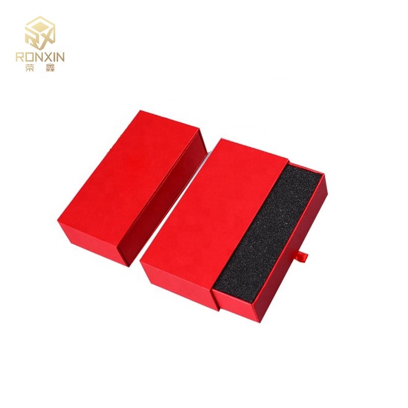 Red Luxury Drawer Box Customize Printed Logo Drawer Cardboard Slidingwith hot stamping foam inner for Gift Box