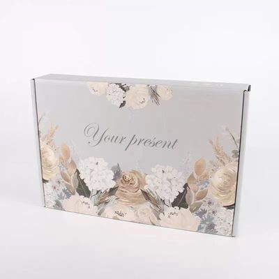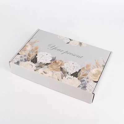 Corrugated Paper E Flute Corrugated Box With Flowers Design Logo By Hot Stamping For Gift Packaging