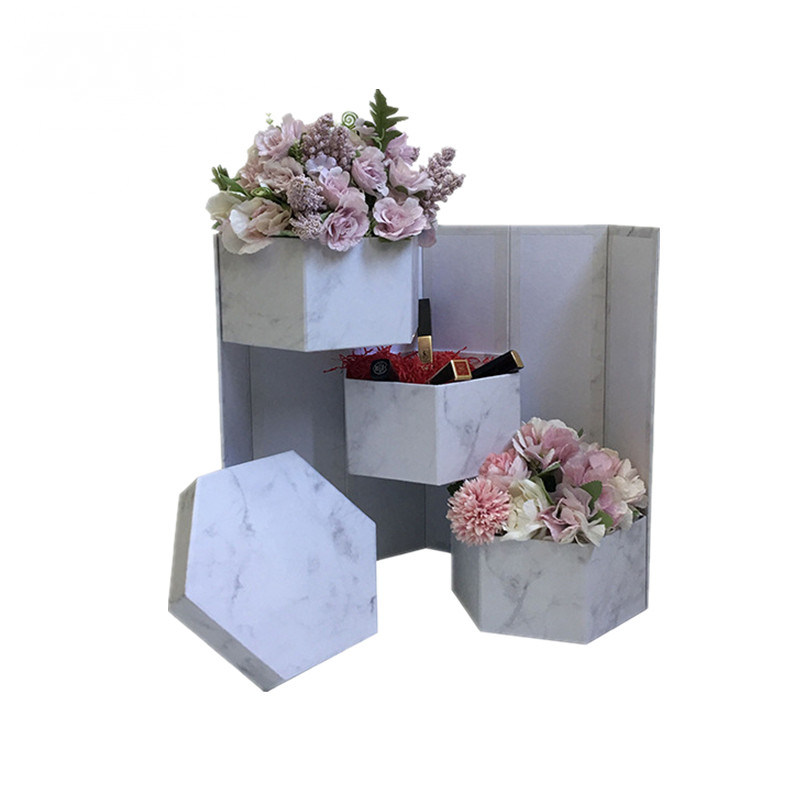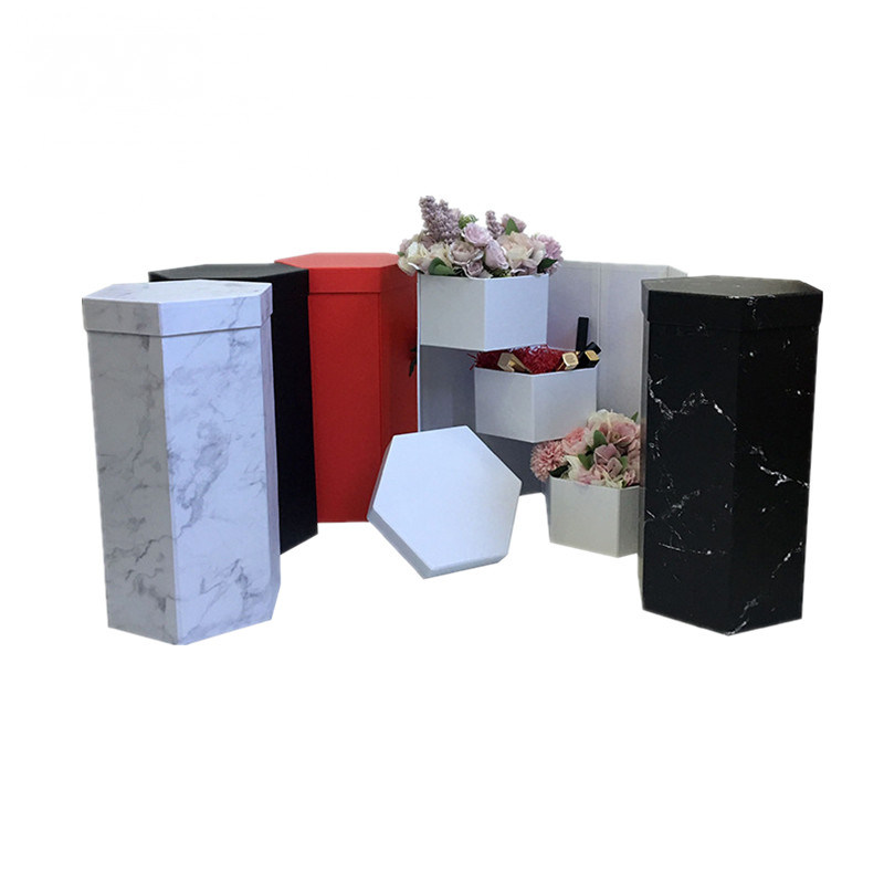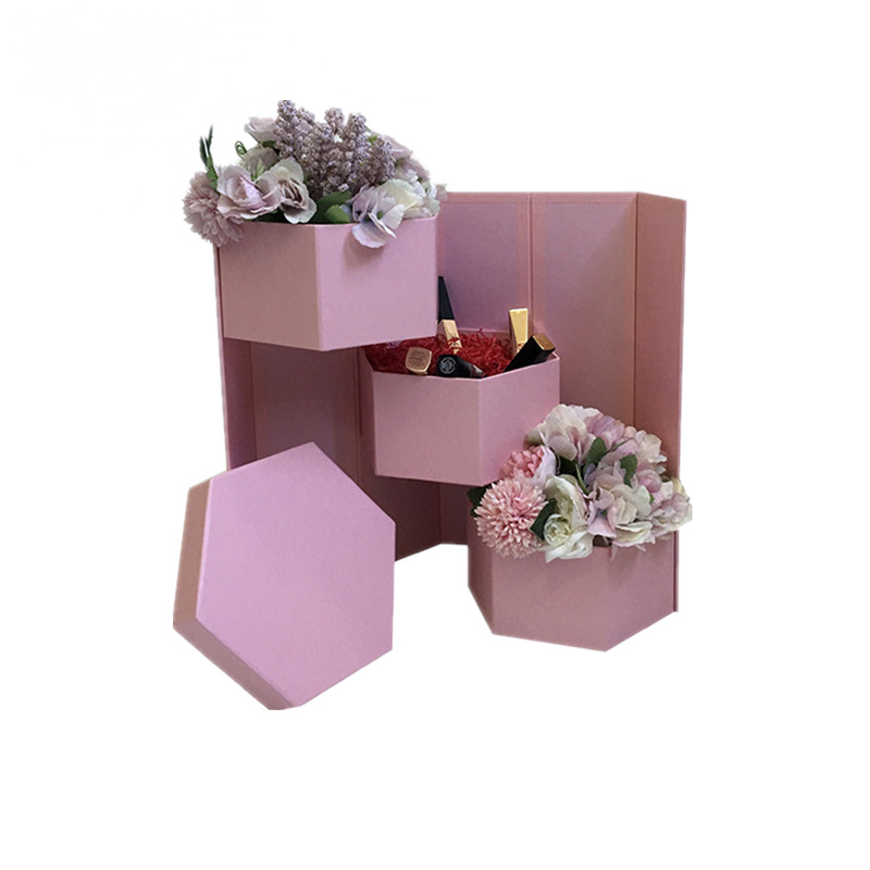 Different Shape Paperboard Gift Boxes With Hexagonal For Flowers Gift Packaging