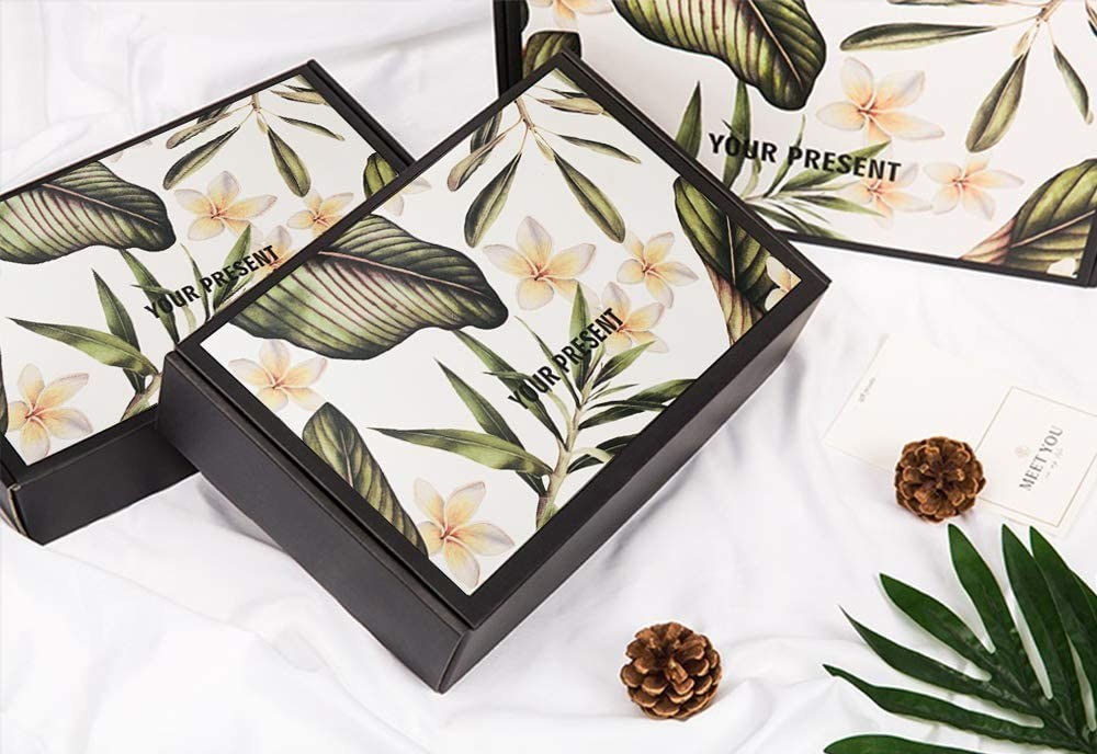 Art Paper E Flute Corrugated Box With Flowers Design Print Logo For Gift Packaging