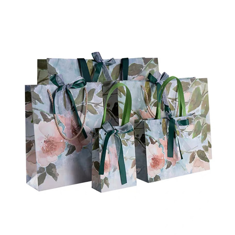 Custom High Quality Luxury Boutique Shopping White Paper Gift Bag Bag With Ribbon Closure