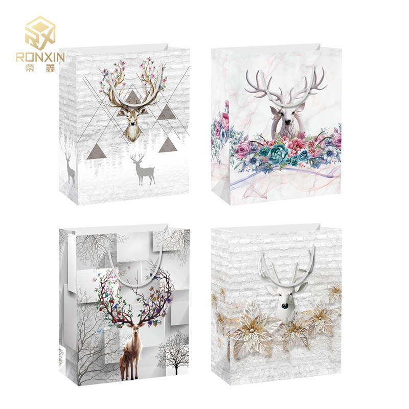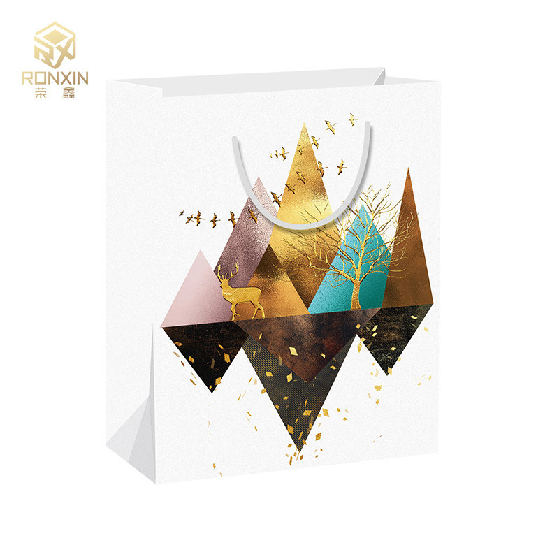 White Printed Paper Shopping Bag With Handle Coated Paper For Shopping Gift Packaging