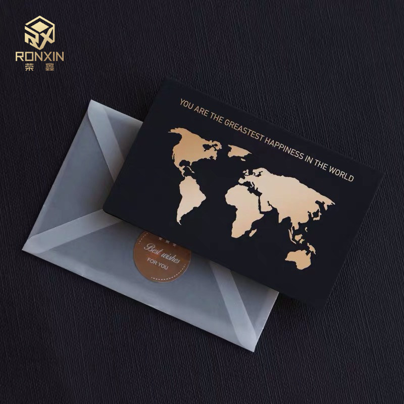 Black Art Paer Laser Cut Wedding Cards With Logo Hot Stamping For Gift Party