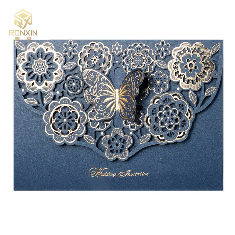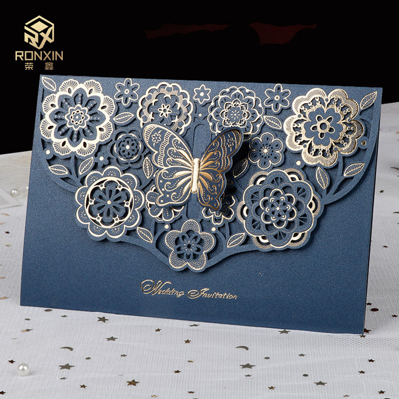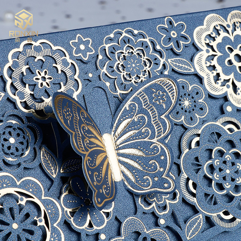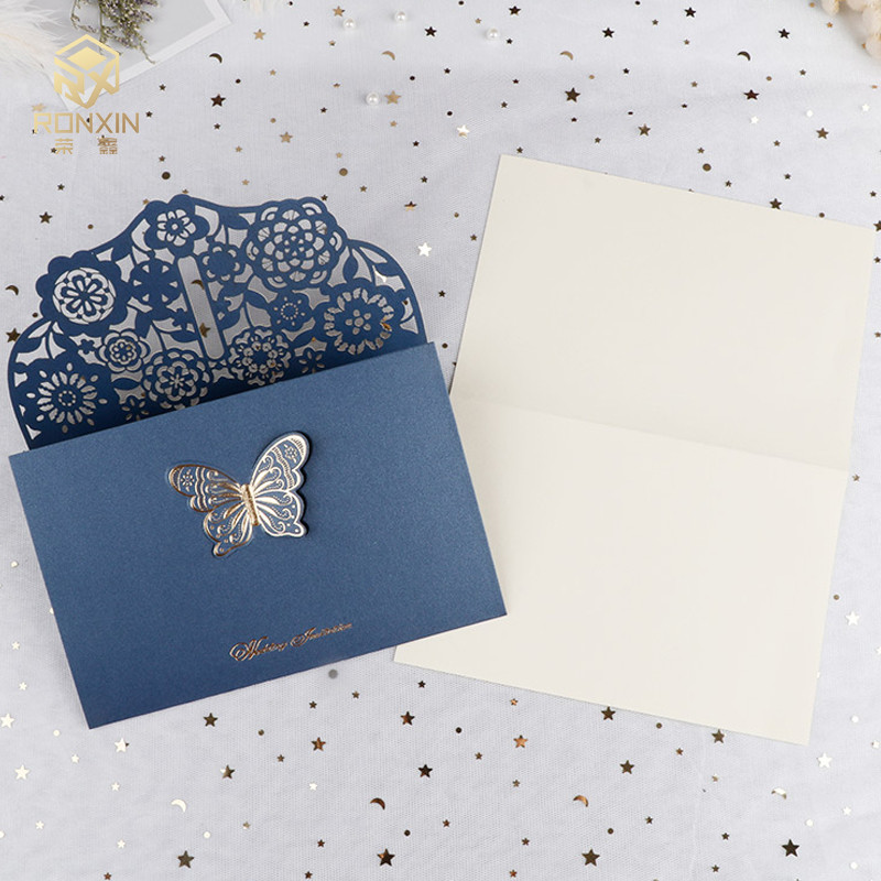 Blue Laser Cut Wedding Cards With Art Paper Design Logo For Wedding Party Cards