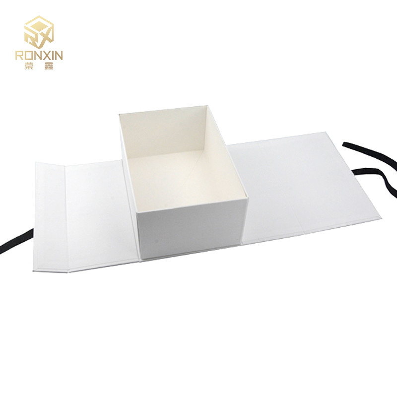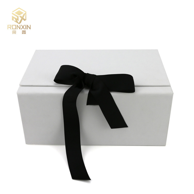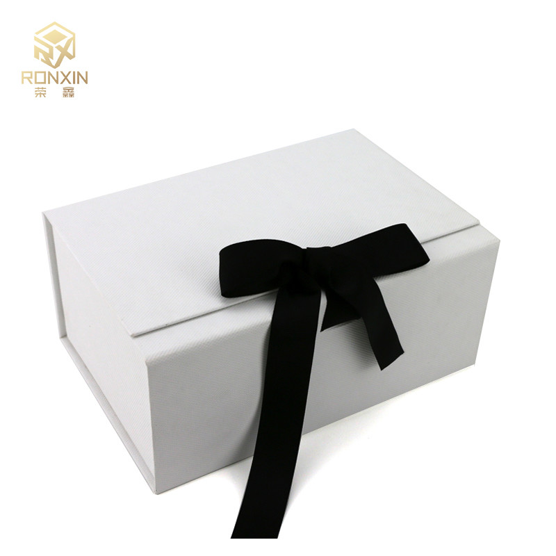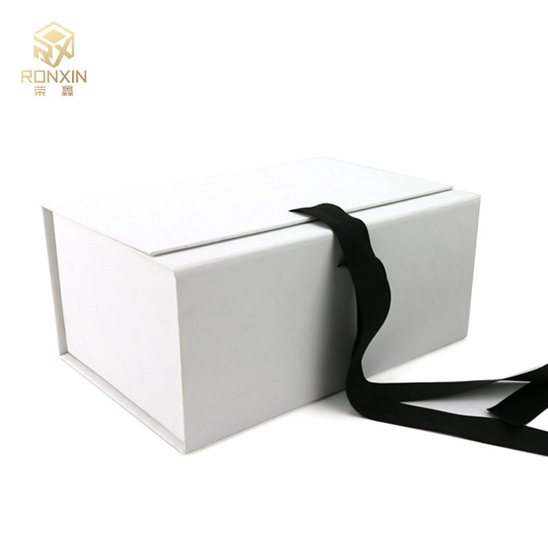 White Paperboard Magnetic Closure Gift Box With Ribbon Design Logo For Gift Packaging