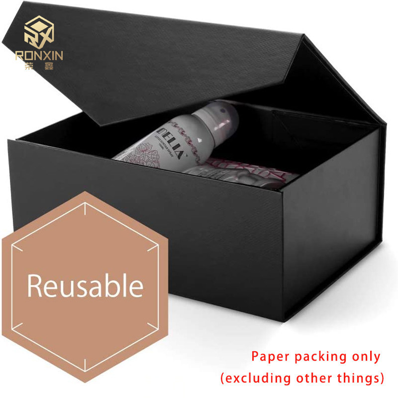 Black Paperboard Magnetic Closure Gift Box With Art Paper For Gift Packaging