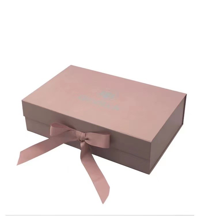 Pink Art Paper Magnetic Closure Gift Box With Ribbon 2MM Paperboard For Gift Packaging