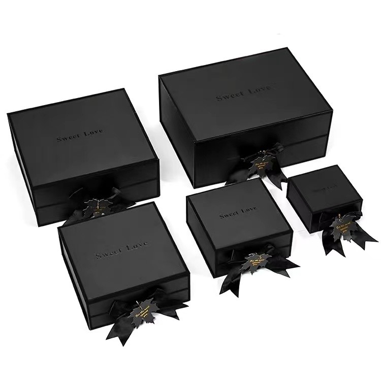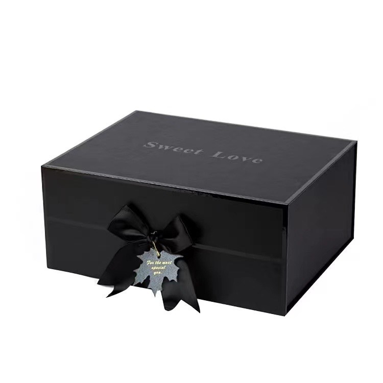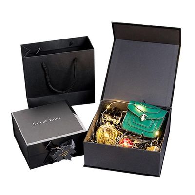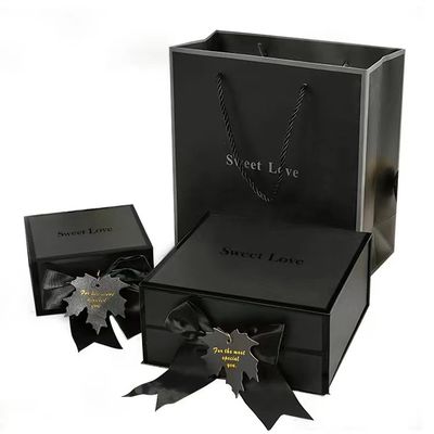Black Magnetic Closure Gift Box With Ribbon 2MM Paperboard For Gift Packaging