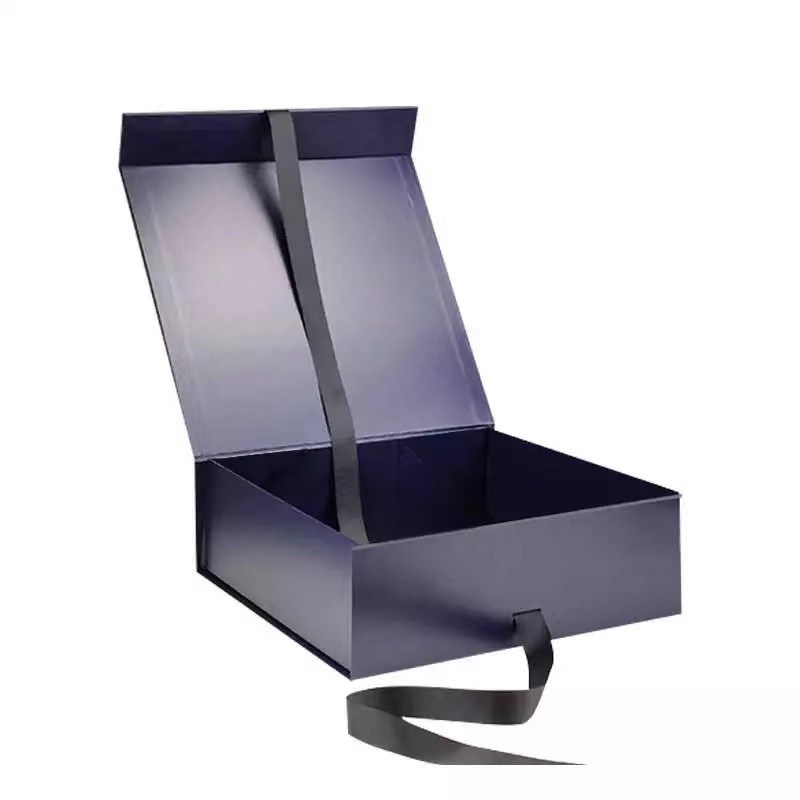 This is a blue or black color gift box, we can print any logo on the top or the side view by hot stamping, which will be more luxury. In the
