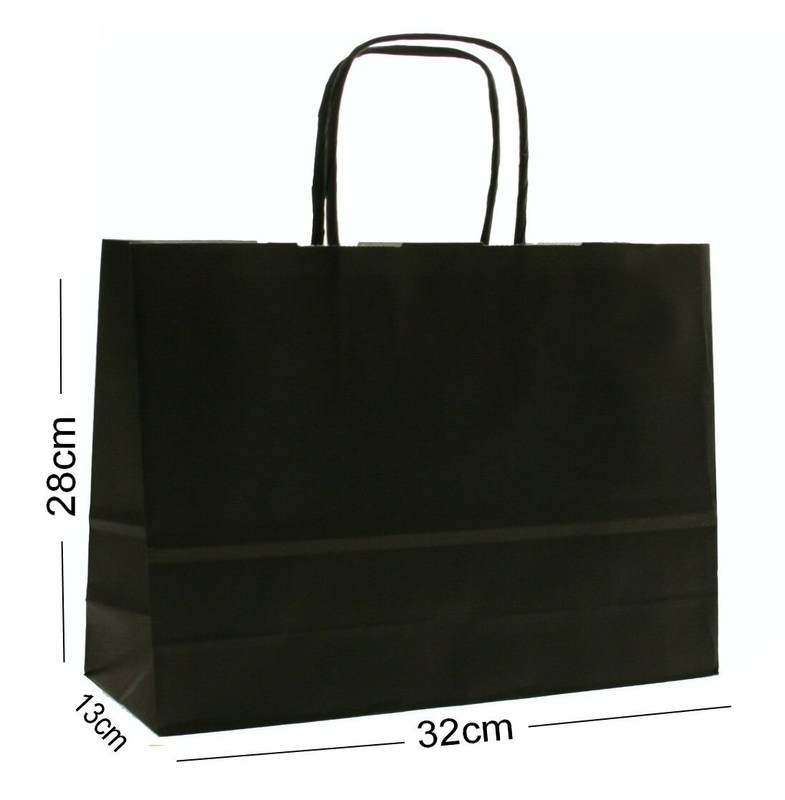 Custom LOGO Black Printed Paper Shopping Bag Boutique Shop Party Gift Bags Size Small Medium Large