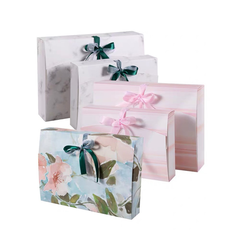 Art Paper Foldable Gift Boxes With Ribbon Print Any Logo For Clothing Cosmetic Gift Packaging