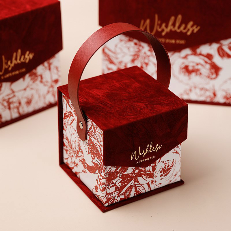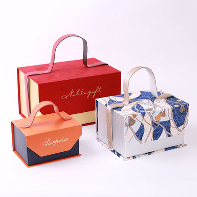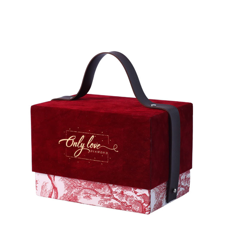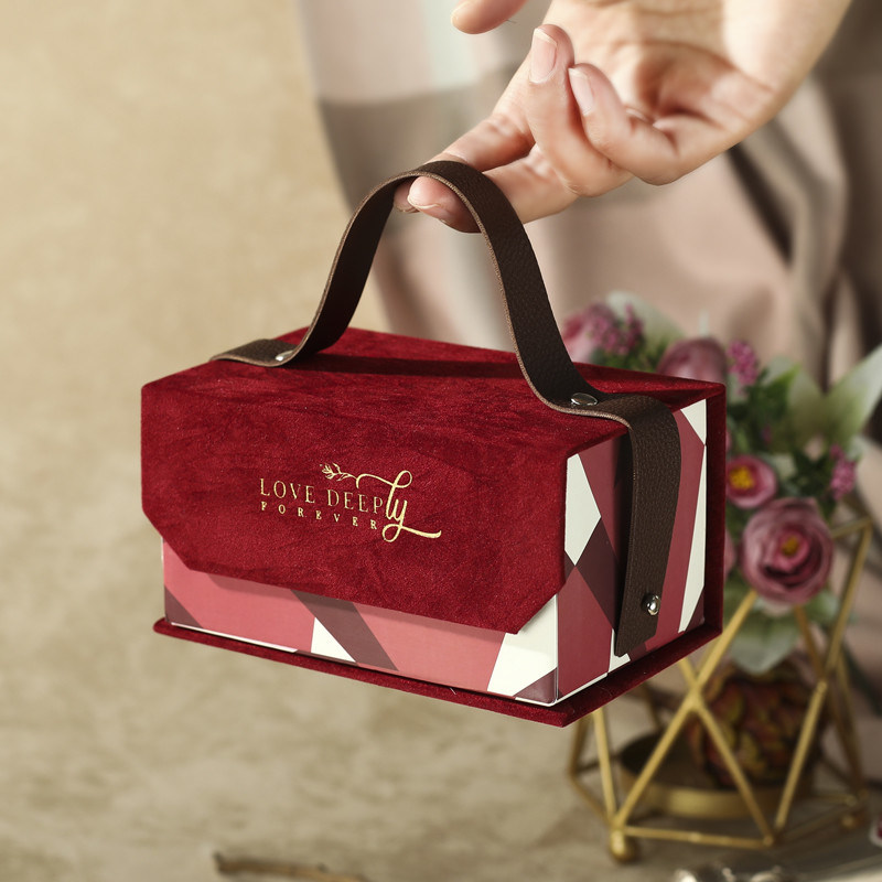 Red Special Paper Paperboard Gift Boxes With Leather Handle For Gift Party Package