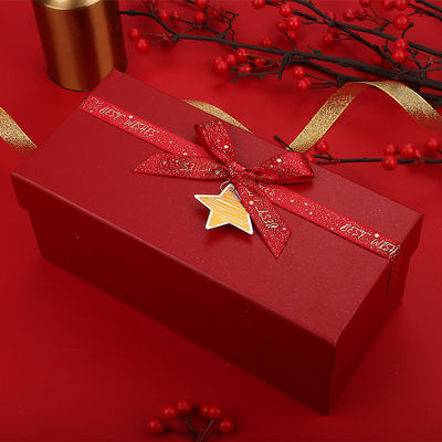 Red Pantone Paper Paperboard Gift Boxes With Ribbon Lid And Based Shape For Gift Package