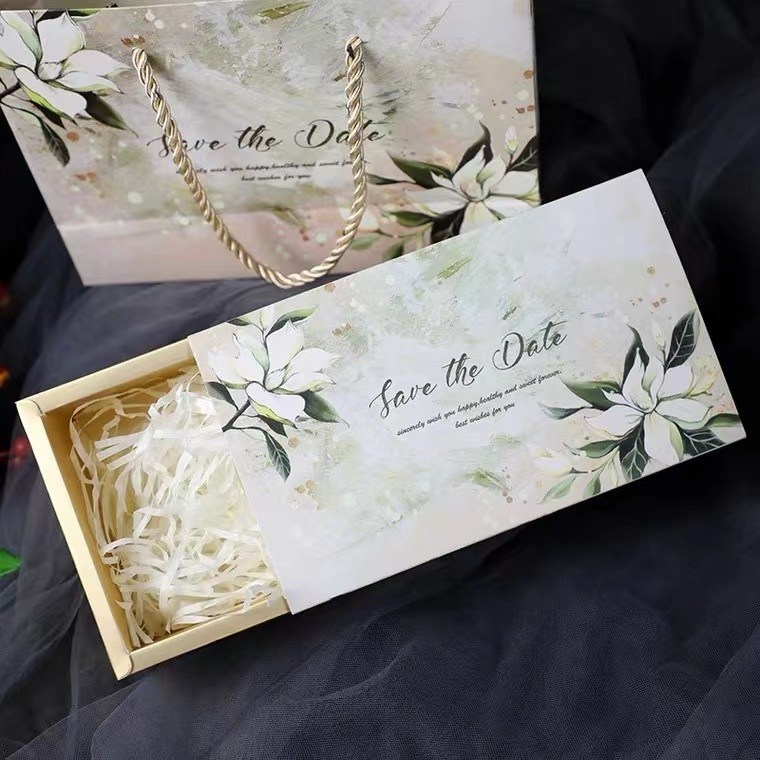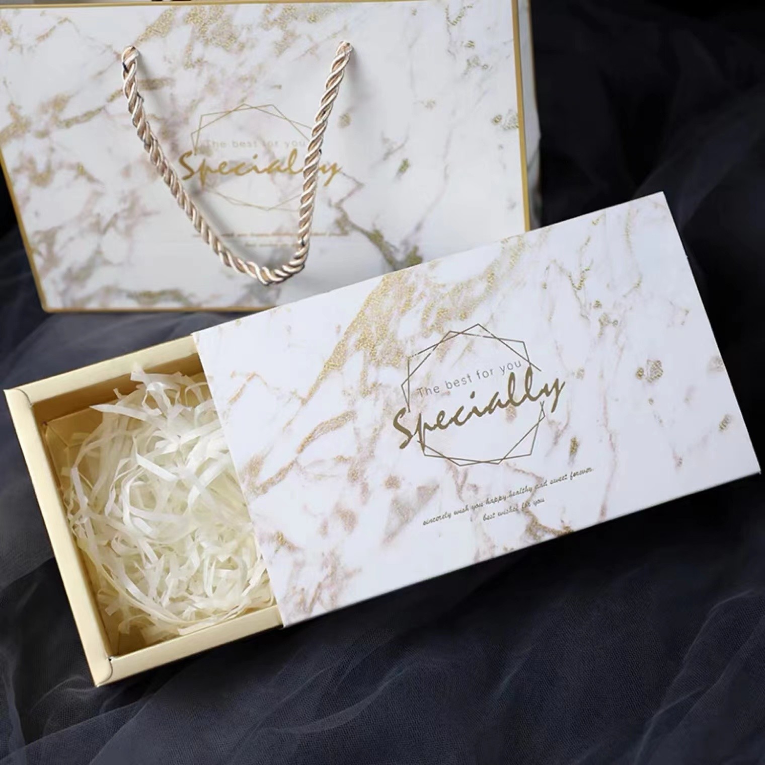 White Art Paper Paperboard gift boxes Drawer Box shape with bag for gift cosmetic packaging