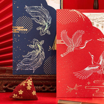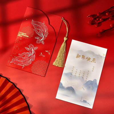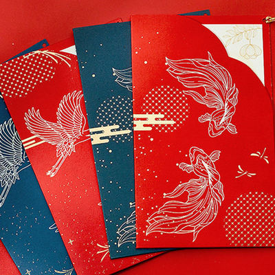 Red Art Paper Laser Cut Wedding Cards With Ribbon Printing Logo For Party Or Festival Gift Card