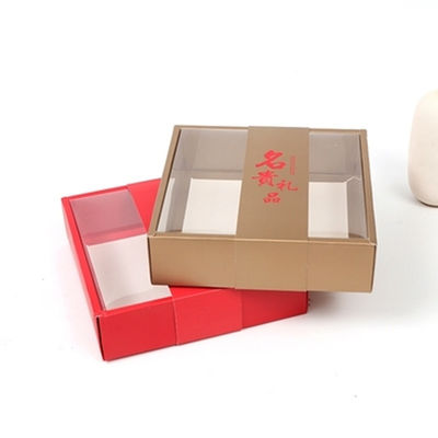 Red Card Paper Kraft Gift Box With Window Eco-Friendly For Food Candy Small Packaging