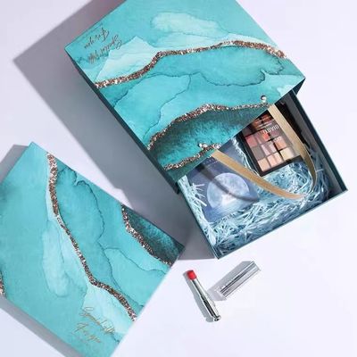 Blue Art Paper Paperboard Gift Boxes Custom Paper Packaging Rigid Lid And Base For Cosmetic Gift Packaging