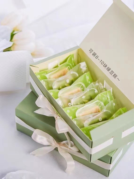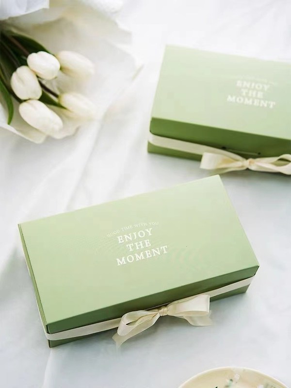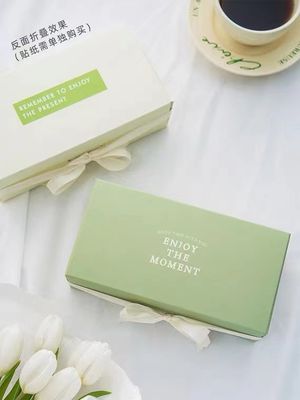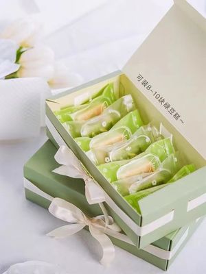 Green Art Paper Foldable Gift Boxes With Ribbon Customize For Food Cookie Candy Packaging