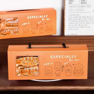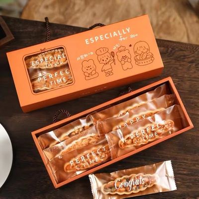 Orange Art Paper Foldable Gift Boxes With Ribbon Die Cut For Food Packaging