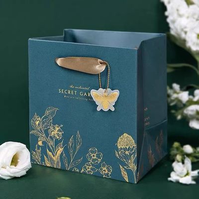 Deeply Green Coated Paper Printed Paper Shopping Bag With Ribbon Handle For Gift Packaging