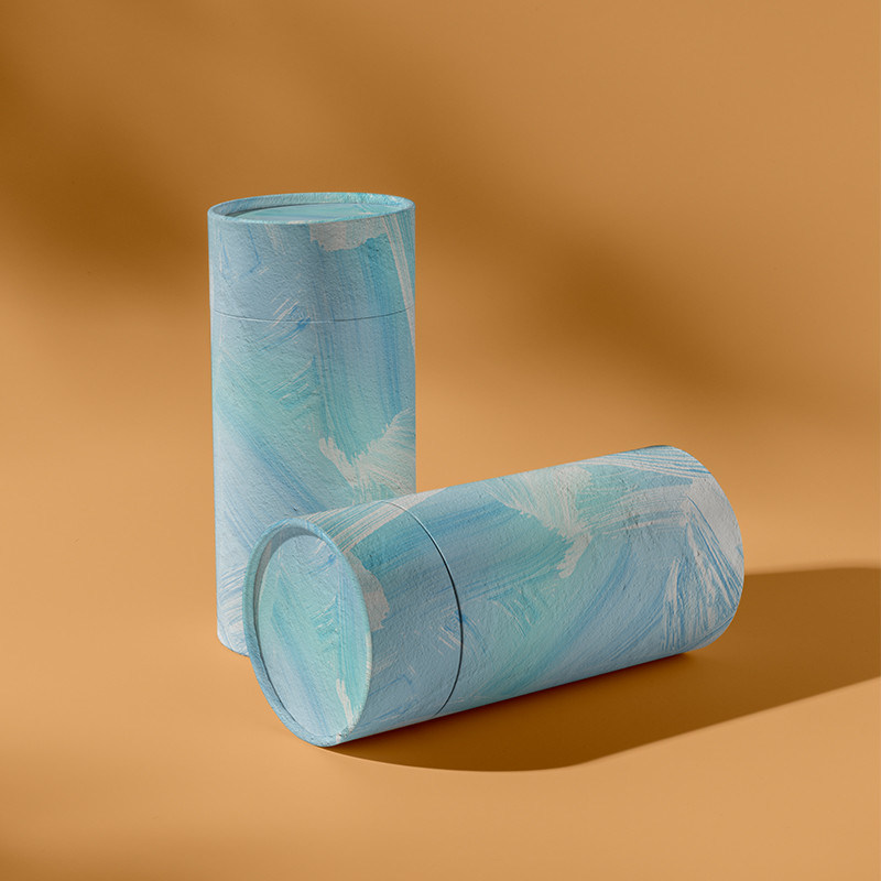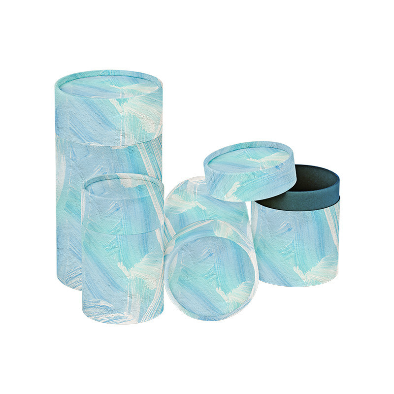 Blue Art Paper Paperboard Gift Boxes Printed Rolled Edge Round Cylinder For Cosmetic Lipstick Packaging