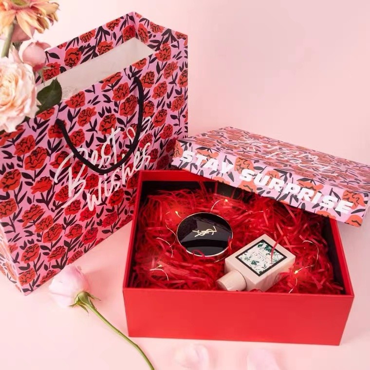 Red Color Art Paper Paperboard Gift Boxes Lid And Based Shape For Perfume Cosmetic Packaging