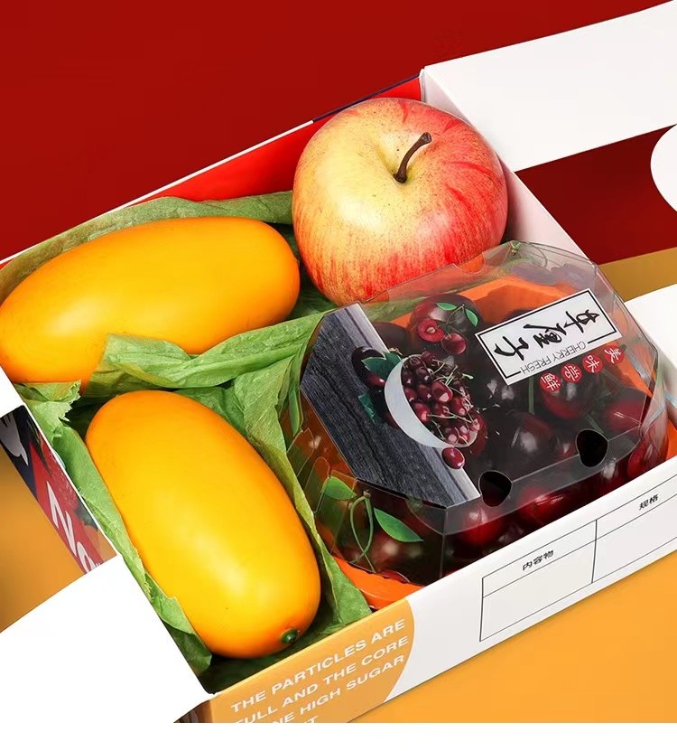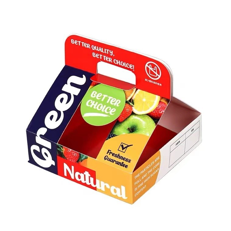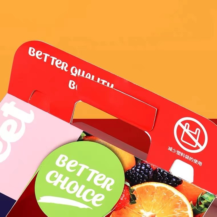 Colorful Strong Paper E Flute Corrugated Box Five Layers Paper With Handle For Fruit Gift Packaging